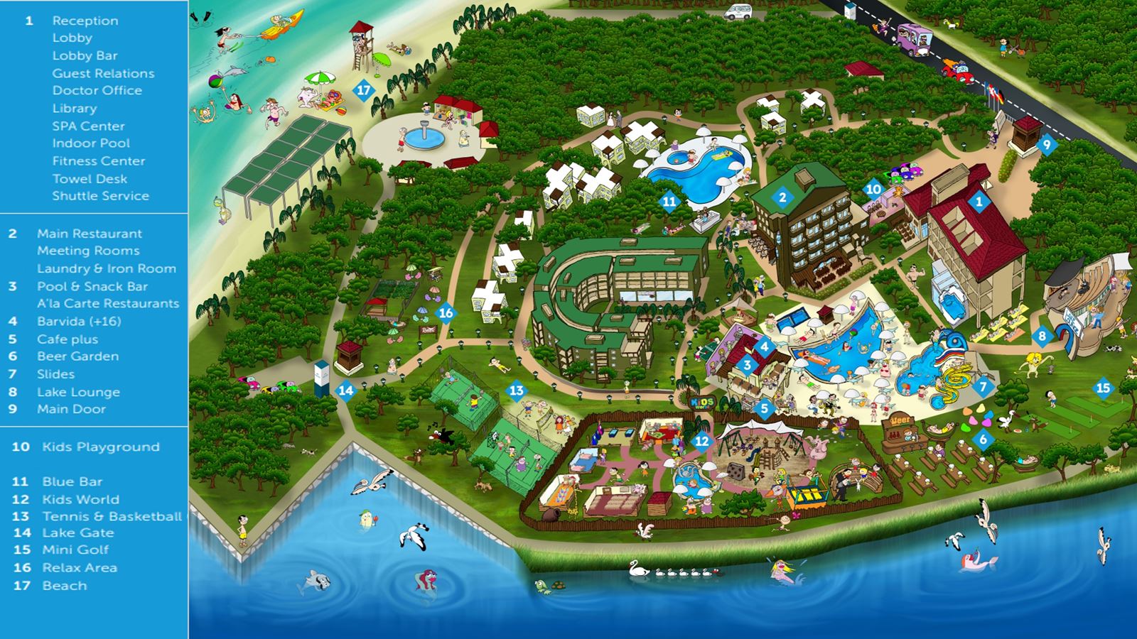 Baarid | Lobby Bar: (24 tundi, Kohalik, Mittealkohoolsed joogid) Sunshine Beach Bar: (10:00 - 17:00, Kohalik, Mittealkohoolsed joogid) Aqua Bar Snack: (10:00 - 00:00, Kohalik, Mittealkohoolsed joogid) Lake Lounge Bar: (20:30 - 01:00, Kohalik, Mittealkohoolsed joogid) Blue Bar: (10:00 - 18:00, Kohalik, Mittealkohoolsed joogid) Barvida Lounge - Adults Only 16+: (20:00 - 00:00, Kohalik, Mittealkohoolsed joogid) Beer Garden: (20:00 - 23:00, Kohalik, Mittealkohoolsed joogid) |